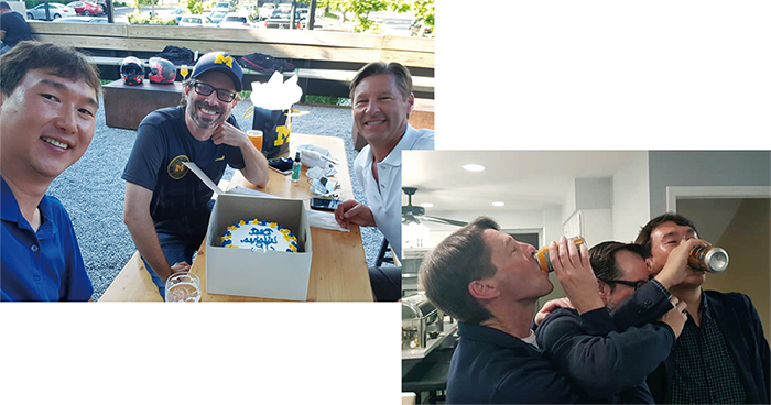 임상 위주의 연수생활에 비하자면, 랩에서의 생활은 장단점이 있는 것 같습니다. 수술방이나 외래가 없으니 본인의 실험 스케쥴만 소화하고 나면 상대적으로 많은 자유가 주어지는 반면, 다소 단조로운 패턴의 생활이 될 수 있으며, 의사가 아닌 PhD나 테크니션과의 공동작업이 조금은 불편하거나 껄끄러울 수도 있을 것 같습니다. 아이들과 드론 조종이나 자전거를 타면서 시간이 많이 보낼 수 있었고, 특히 미시간에는 최근 재생의학과 자율주행연구가 부각면서 많은 한국 선생님들이 근처의 랩에 와 계셨기 때문에, 다양한 분야의 연구자분들과 자주 어울릴 수 있었습니다.
