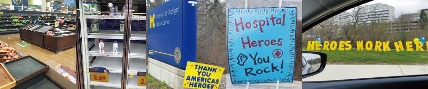 제 연수 기간중의 이벤트라면 단연 COVID-19 이라고 할 수 있겠습니다. 사실 2월 중순쯤 한국에서 신천지발 집단감염사태가 벌어졌을 때만 하더라도 멀게만 느껴졌었는데, 불과 한달도 되지 않아 미국에서도 상당히 외진 지역인 미시간까지 번지는 것을 보고, 세상이 얼마나 좁은지를 실감할 수 있었습니다. 한두달 사이에 사재기 행렬, 흑인 폭동 등 급속히 나빠지는 미국 바닥민심을 보면서, 늘 선진국이라고 우러러보던 미국도 결국 별 수 없는 사람사는 동네로구나 라는 생각도 했고, 한편으로는 출근할 때마다 병원앞에 새로 생기는 응원메시지를 보면서 의료인들에 대한 깊은 애정과 신뢰가 느껴지기도 했습니다.