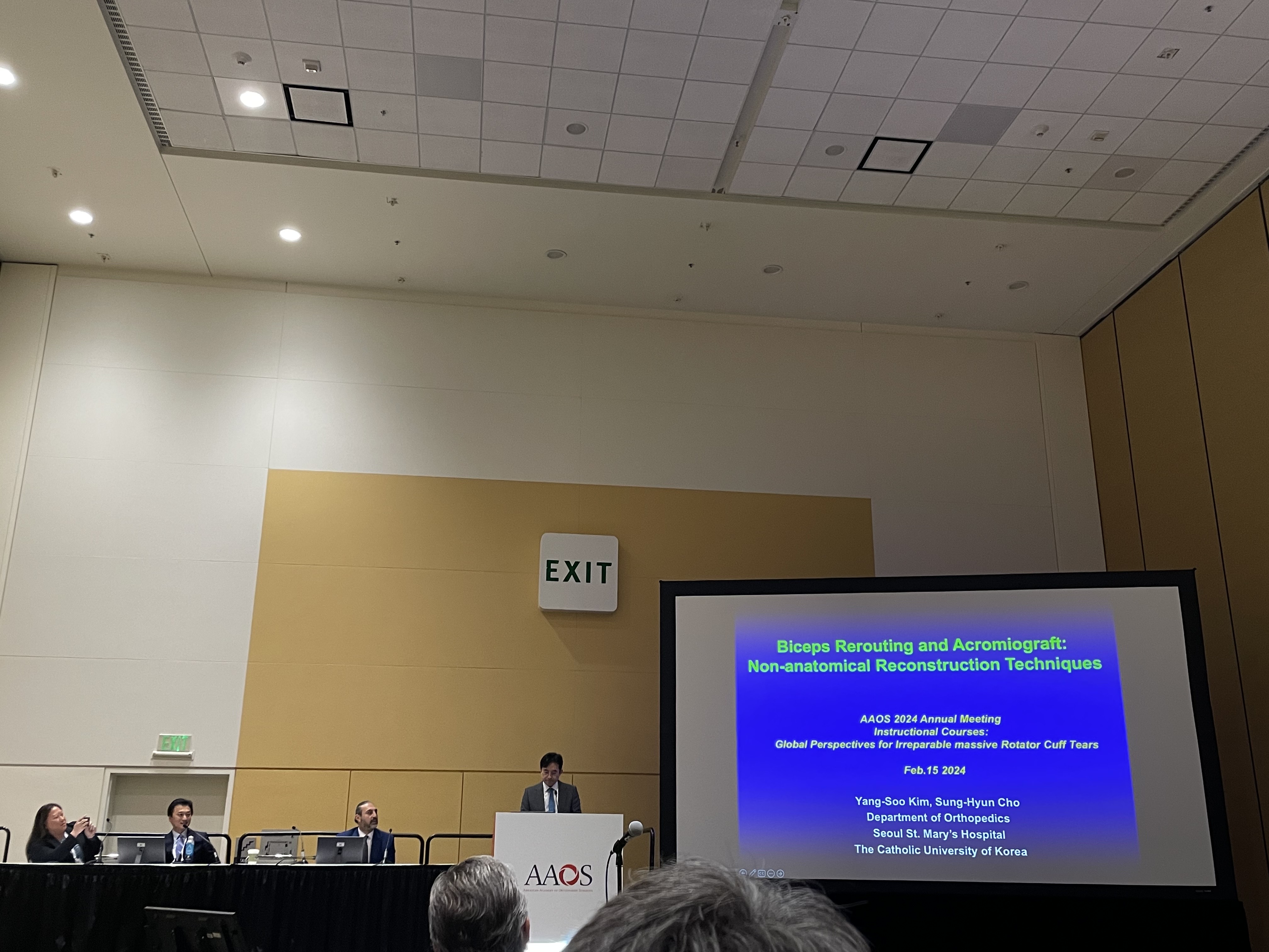 On the day of the lecture, I rushed to the convention center because of the early start time. On the way, I stopped by a local coffee house with a nice aroma. I greeted familiar faces, Dr. Muh and Dr. Mihata. I presented on biceps rerouting—undoubtedly my signature technique—and my new technique, ‘Acromiograft,’ as a rescue technique for large to massive rotator cuff tears. The audience's questions were numerous, more than I expected. I concluded with a case combining BR and Acromiograft.